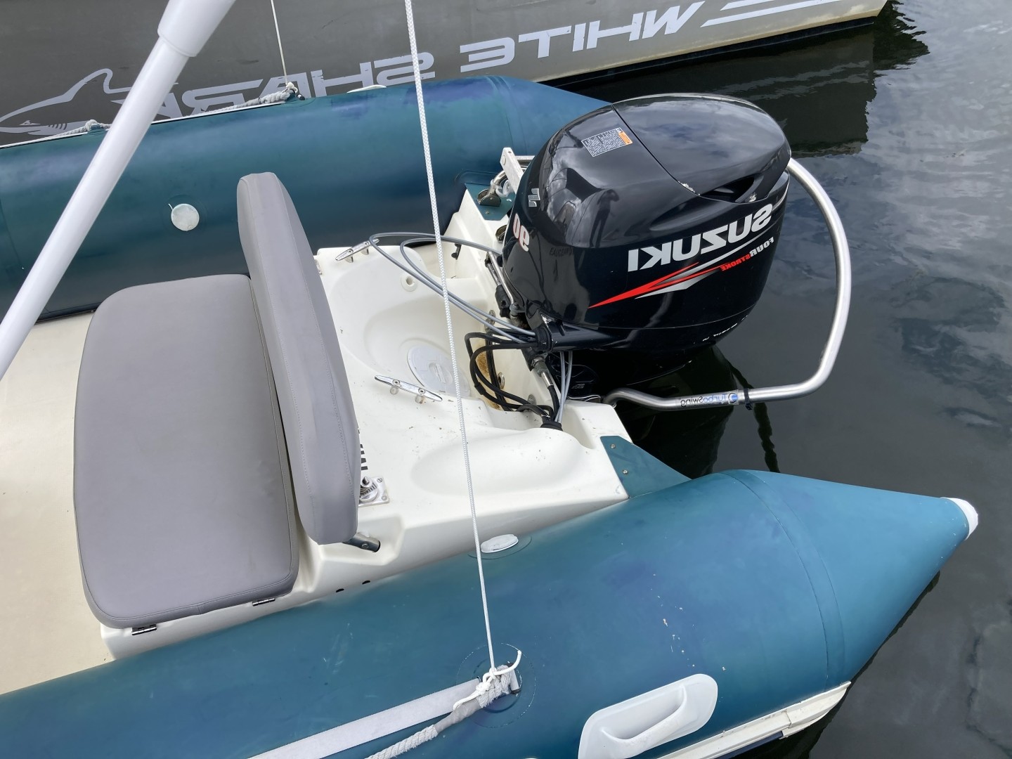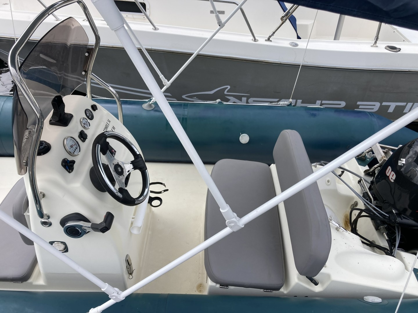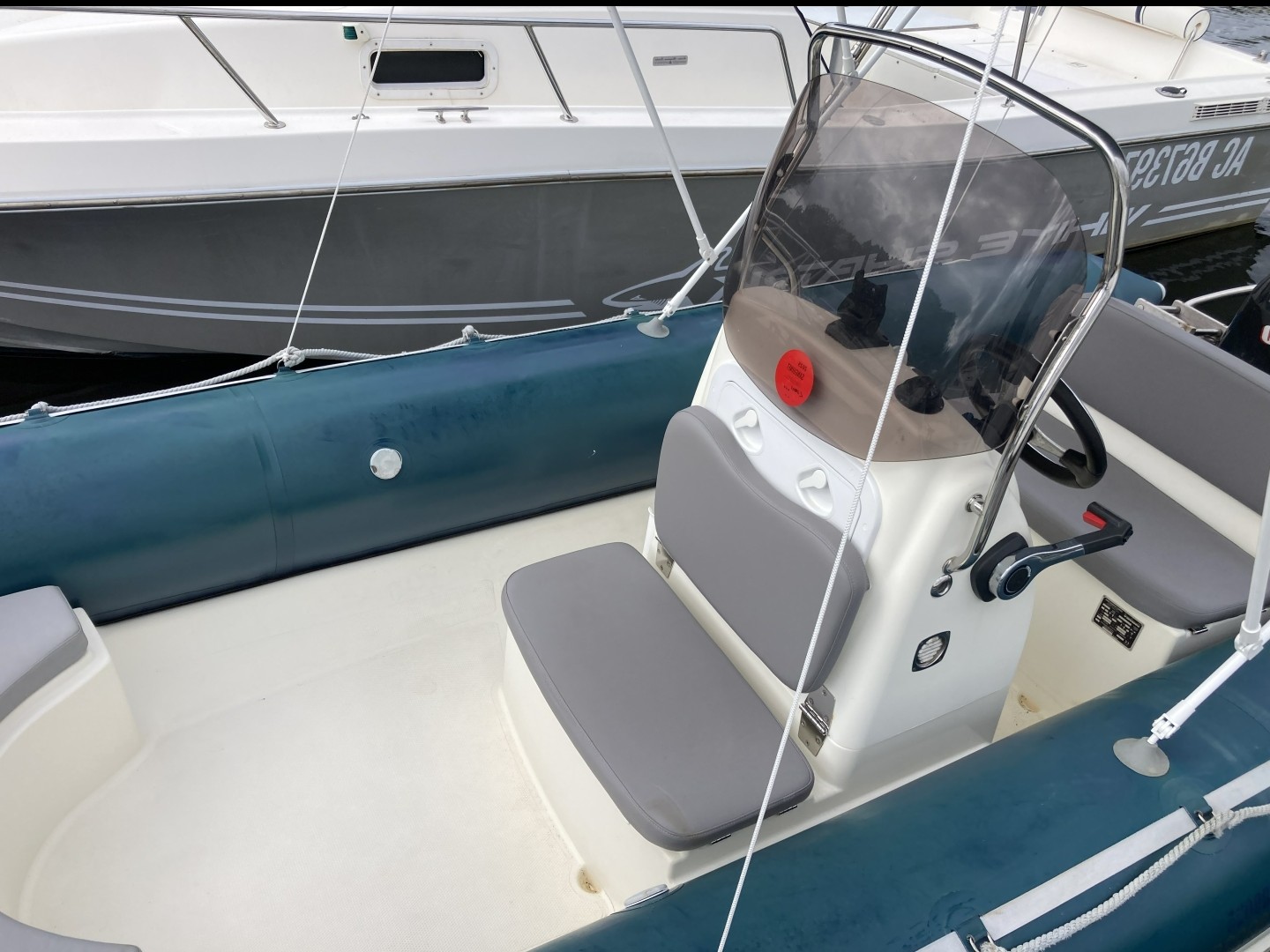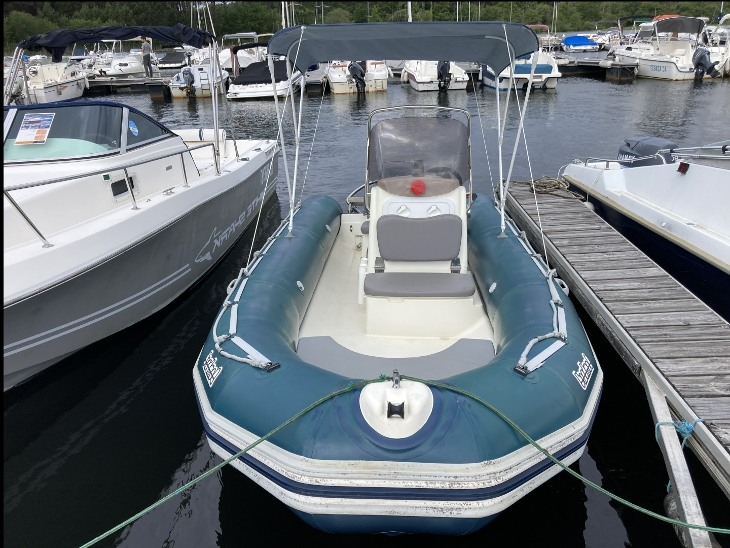 Je vous propose ce sympathique semi-rigide léger et facile à manier. Il vous permettra aussi bien de naviguer en eau profonde grâce à son moteur performant, que de vous approcher au plus près des plages de sable clair du grand lac, grâce à son faible tirant d'eau (0,40m). Vous pourrez vous y baigner ou jeter l'ancre pour un pique-nique improvisé sur une crique retirée. Ses nombreux équipements conviendront pour la promenade, la pêche ou