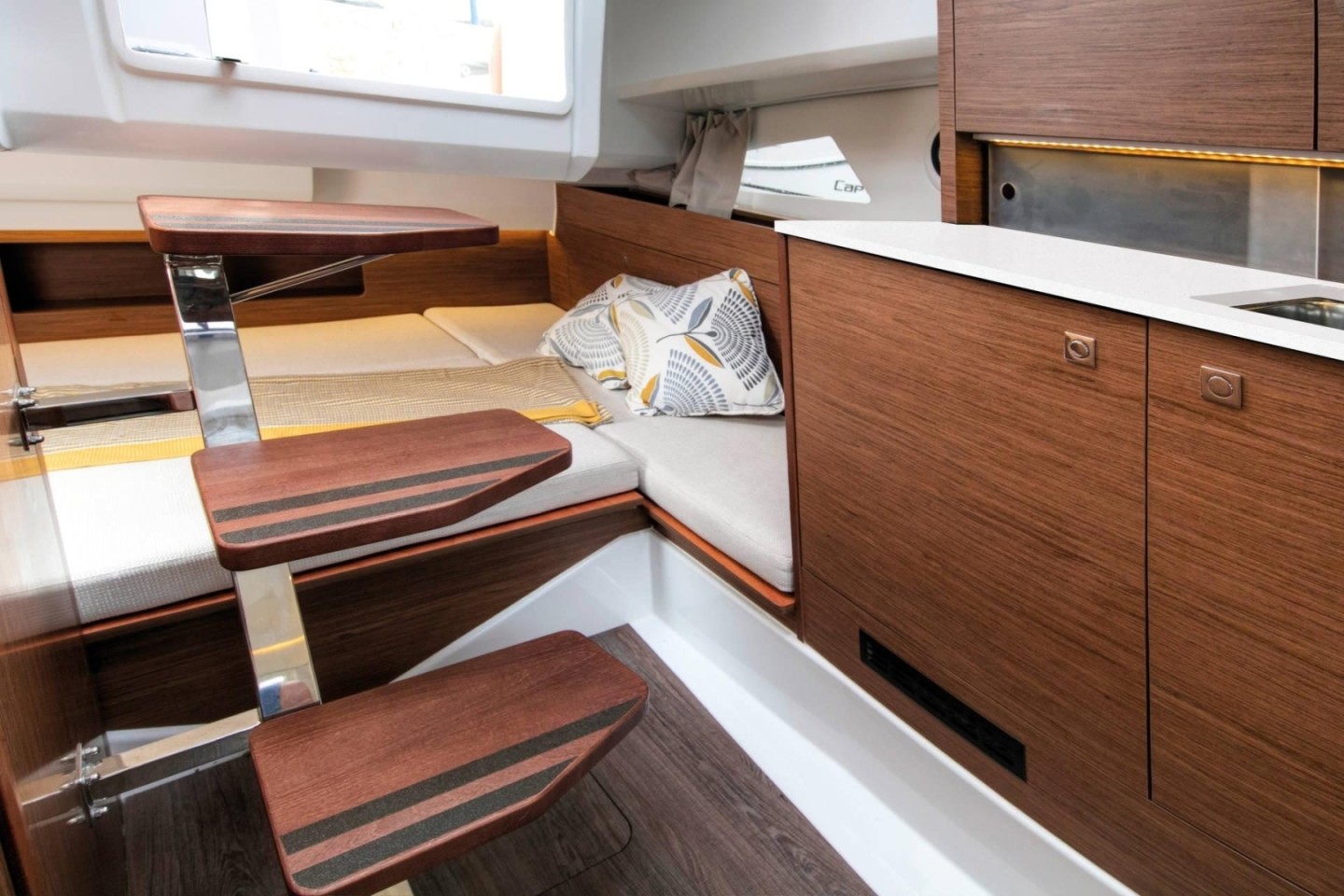 THE CAP CAMARAT 9.0 WA REVISITS THE CONCEPT OF THE 8.5 WA, A SPORTY BOAT WITH A FAMILY SPIRIT, WHICH HAS BEEN VERY SUCCESSFUL. Its traditional V-shaped hull is designed by Michaël Peters. Its hull, stable and powerful, ensures very safe behavior at sea for family cruises or sporting outings.