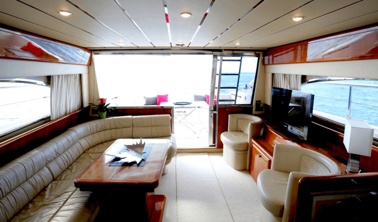 First of all, the FERRETTI 53 is a very comfortable luxury ship presented by the famous Italian Ferretti. This yacht has all the equipment and comfort of a luxury boat on 16m, with 1000 hp. It can accommodate up to 10 people, excluding crew. Inside, first of all, it has an owner's cabin in the bow with a double bed and bathroom with shower. Then, it has two double cabins with twin beds, integrating a bathroom with shower in the corridor. As for the