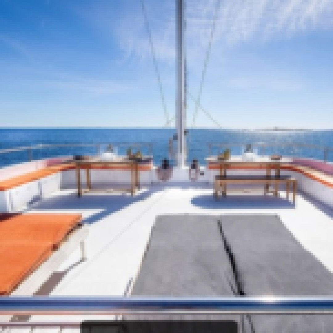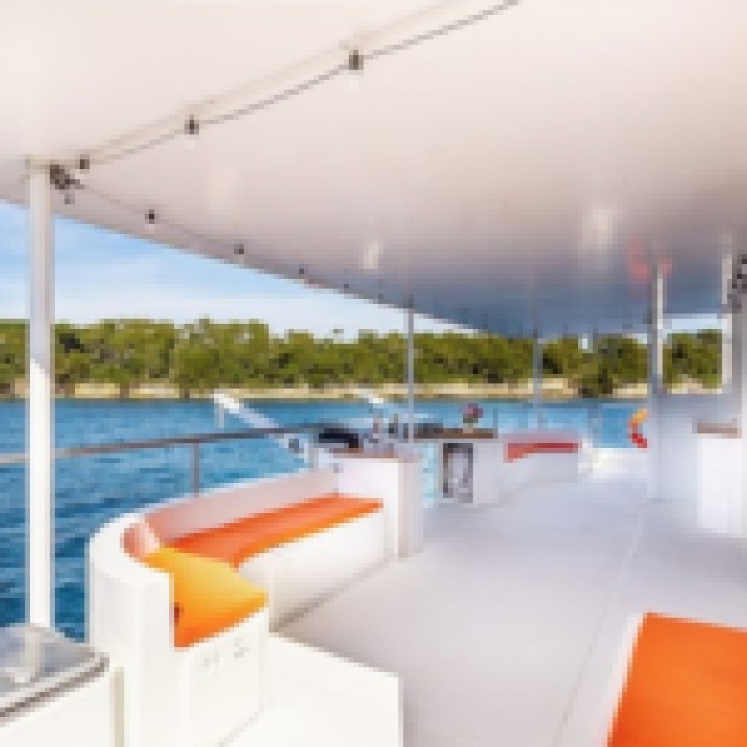 (Coordinates hidden) offers you the rental of the maxi catamaran based in Marseille, Feng Shui. Built in 2017, benefit from exemplary service on board for up to 80 people. Indeed, it measures 20m long by 12m wide! In total, it is therefore a surface area of 180 m2 of main deck and a Sun deck of 50 m2. Please note that the price displayed is only for 30 people including crews with port costs but not delivery. Then the prices are as follows: - from