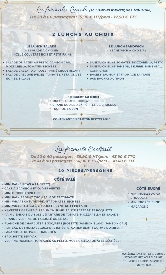 (Coordinates hidden) offers you the rental of the maxi catamaran based in Marseille, Feng Shui. Built in 2017, benefit from exemplary service on board for up to 80 people. Indeed, it measures 20m long by 12m wide! In total, it is therefore a surface area of 180 m2 of main deck and a Sun deck of 50 m2. Please note that the price displayed is only for 30 people including crews with port costs but not delivery. Then the prices are as follows: - from 31 to 55 passengers or 7590 euros. - from 56 to 80 passengers or 9290 euros. This catamaran is available for rental in the form of privatization by the day (8 hours), and in the evening (4 hours), at sea or at the quay. However, it is important to note that during any sea trip, access to the Parc des Calanques from Marseille to Cassis is restricted. Anchoring is prohibited from the strip from 300 meters. Once on board, you will have a bar with 2 planchas, 1 ice-maker and 1 equipped kitchen. To liven up your days, everything has been designed inside and out to punctuate the organization with different areas and activities. In particular, you will find a flat screen for meetings inside. Outside: a deck shower, deck mattresses, and their cushions, but also an on-board sound system and evening lights. Please note that water games are available (under the responsibility of the users): 4 paddles, 2 kayaks, 20 snorkeling equipment, 2 large floating mattresses, diving board 4 meters high from the sun deck.