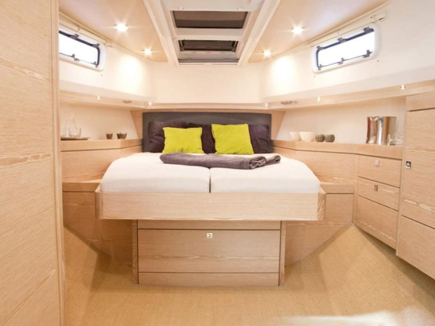 Fjord type opens are known for their space on board, their ergonomics. We choose a Fjord 40 when we want to be able to fully enjoy a millimeter refinement and a sporty engine power. Thus, its dimensions of 13.99m x 3.99m, and its double Volvo Penta IPS600 + Joystick engine offer you 2 x 435hp. Enough to delight you! Moreover, on the navigation side, GPS depth sounder, electric windlass, annex, autopilot and bow thruster will greatly facilitate your day. On the comfort side, you will like to have a sun awning, a table, sun loungers, a deck shower, 220v and USB sockets, internet and WIFI on board. In summary, everything you need to fully enjoy a day has been provided for you on this magnificent yacht for rent. In addition, the kitchen has a sink, hotplates, a refrigerator, and a freezer. The toilets have a toilet, a shower, fresh and hot water in a closed bathroom and a watermaker. Finally, and with the aim of making this day an unforgettable moment, remember to take advantage of all the nautical equipment available on board: Ladder Diving equipment Fins, mask and snorkel TV External speakers Ladder Diving equipment Fins, mask and snorkel TV External speakers