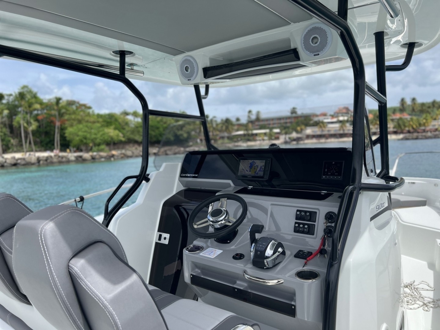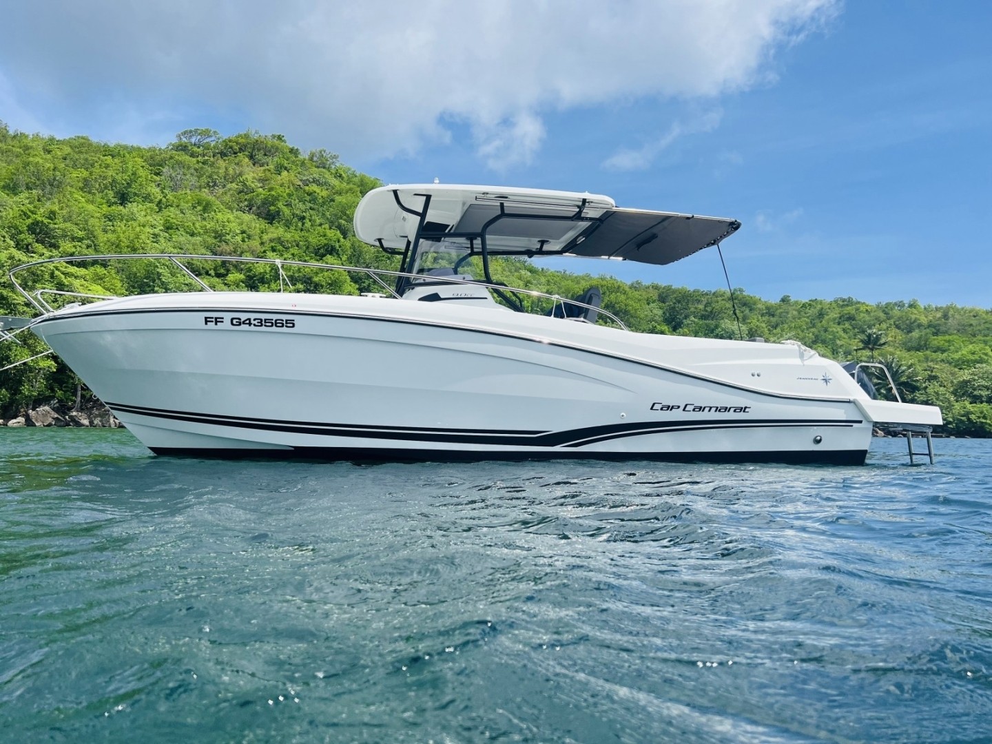 Bienvenido a bordo de este magnífico Jeanneau Cap Camarat 9.0 CC. Es el barco ideal para un pequeño crucero de un día. Bajo la consola, el Cap Camarat 9.0 CC cuenta con una sorprendente cabina doble muy luminosa con ingeniosos espacios de almacenamiento, así como baño, lavabo y ducha. Salga a descubrir la costa caribeña (anse d'Arlet para las tortugas, el rocher du Diamant, el Carbet para los delfines, etc.). Puede alojar hasta 12 personas en