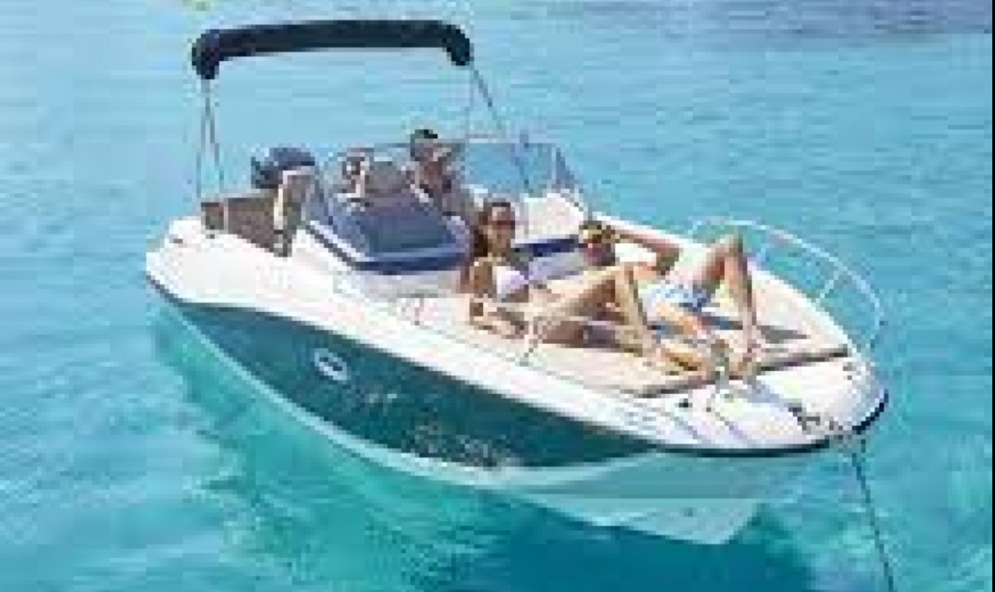 Magnífico Quicksilver 675 _ Año 2019 _ Motor Mercury 4 Tiempos 200 CV _ Gran toldo Bimini _ Escalera de baño _ Toma de agua eléctrica _ Bañera con ducha de mano < br>_ 2 asientos de conducción _ Baño delantero _ Asiento trasero