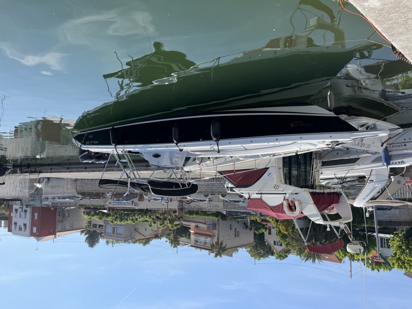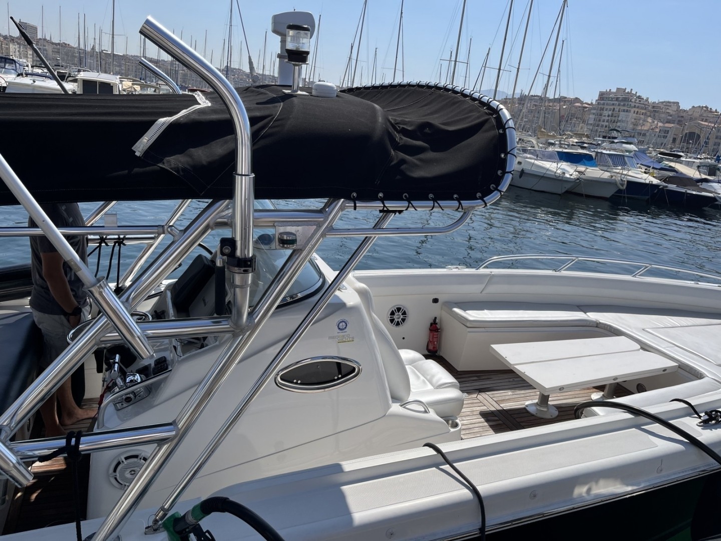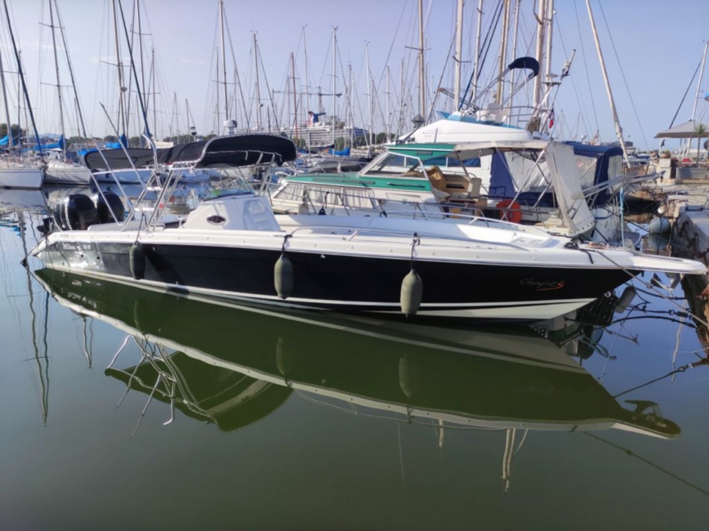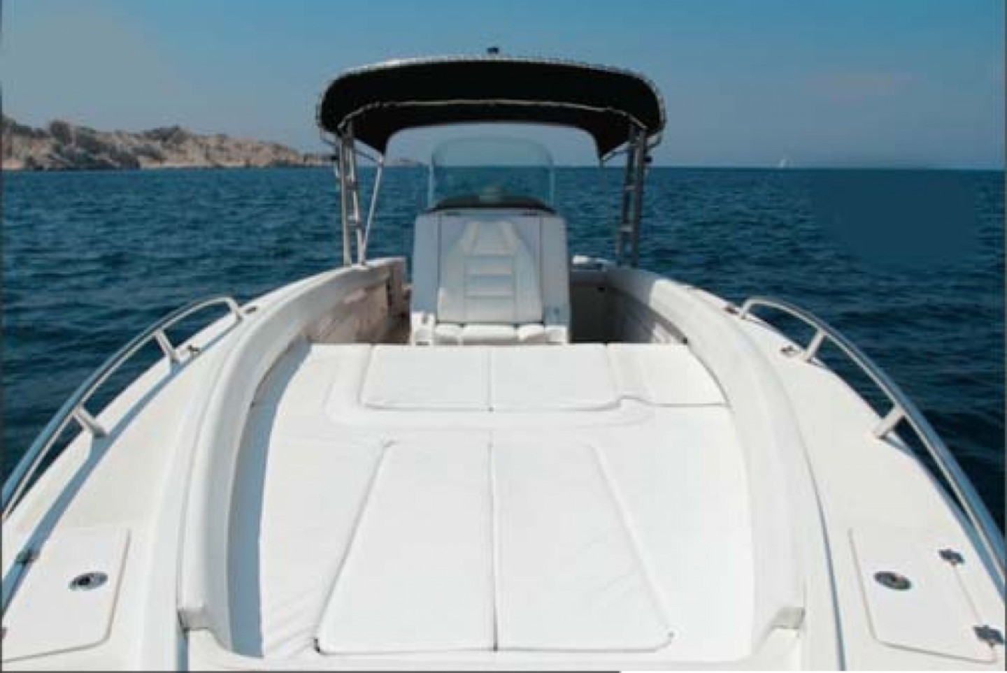 El precio del alquiler de la embarcación open Craft 360 AL DHAEN no incluye combustible ni el patrón obligatorio. Debes pagar la provisión del patrón al abandonar el barco: 300€, luego al finalizar tu viaje deberás reponer tu depósito de combustible. Calcula entre 150 y 350 € de combustible para un gran día en el mar. ¡Esta Al Dhean Craft - 360 Open mide 11 metros de largo! Es atípico por su línea y sus actuaciones offshore. Representa más que nunca la versatilidad característica de lo abierto. Su plano de cubierta es muy agradable y amigable. Nos encanta su nivel de acabado. En la parte delantera, encuentra una tumbona que se puede transformar en mesa. Alrededor de esta mesa pueden sentarse 4 o 5 personas. En la popa, un gran salón en forma de U también se puede convertir en tumbona. El barco está equipado con elementos de confort, WC eléctrico, ducha de agua dulce en cubierta, música, apertura lateral para facilitar el acceso al baño. Todo nuestro equipo está a su disposición para resolver sus dudas.