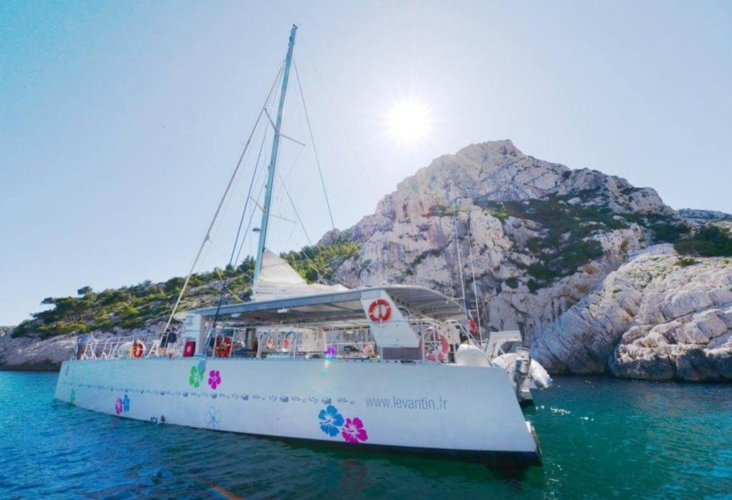 En primer lugar, el Ecolorato puede acomodar hasta 115 personas a bordo mientras navega y hasta 150 personas en el muelle. Para eso, el Ecolorato es obviamente extremadamente espacioso: 25 m de largo por 12 m de ancho. En total se trata pues de una superficie de 300 m2 de cubierta principal y 50 m2 dedicados a camas elásticas y solárium. ¡Con él no has terminado de divertirte! Para ello, Ecolorato ofrece diferentes soluciones de alquiler en forma de privatización grupal: Durante el día, por un período de 5h a 6h Por la tarde o medio día por una duración de 3 a 4 horas Además, descubre a continuación todo el equipamiento incluido a bordo. Bar 3 x 2 m con frigo bar Cocina de catering / nevera de almacenamiento de 800 litros. Horno de placa gourmet / placa de inducción Bodega Buffet 115 personas / servicio de mesa comida 80 personas (10 mesas de 8) Escalera retráctil hasta el mar Por supuesto, para su comodidad, se proporcionan baños para hombres y mujeres. Por el lado de la seguridad, también se incluye un anexo de 8 plazas. Por último, disfrutarás de moverte al ritmo de la música gracias a un sistema de sonido + micrófono de 4 KW.