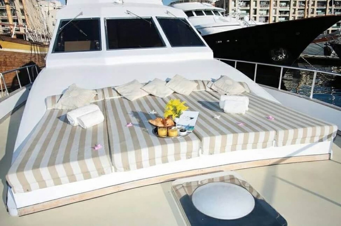 Te ofrecemos un elegante y confortable Versilcraft con Flybridge (Rooftop), de 22 metros de eslora, con una superficie útil de aproximadamente 120M2 El CYOS solo está disponible para alquiler en el muelle durante el día o en la velada para “cenas de empresa, bautizos, cumpleaños, seminarios, team building, veladas, bodas, etc.”, capacidad máxima en muelle ==> 45 personas. ESTÁ UBICADO EN EL VIEJO PUERTO DE ¡¡¡MARSELLA JUSTO FRENTE A NOTRE DAME!!!!!ubicación excepcional!!!!!!! Equipo de yate 4 camarotes, incluido 1 camarote VIP con cama king size, baño con lavabo doble, 3 camarotes dobles (cada camarote está equipado con un baño con WC, ducha y lavabo) 1 Amplio comedor, sofás, pista de baile 1 Salón de popa con mesa y 6 asientos con acceso al mar Sistema de sonido de 200 Watts (tenemos listas de reproducción y puedes traer tus llaves USB o conectar tu smartphone vía bluetooth) 1 plaza VIP en el puesto de mando Wifi a bordo Gran baño de sol en el frontal (6 plazas) Cocina con horno, nevera, congelador, cocina Flybridge (Rooftop) con pista de baile de 40M2, barra de bar, 2 neveras, plancha Opciones Jacuzzi 100€ DJ 200€ Plancha 40€ Cena cóctel a partir de 10 personas