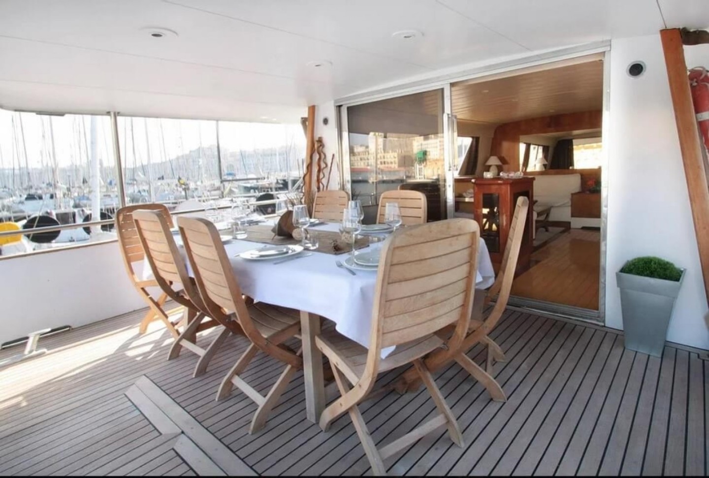 Te ofrecemos un elegante y confortable Versilcraft con Flybridge (Rooftop), de 22 metros de eslora, con una superficie útil de aproximadamente 120M2 El CYOS solo está disponible para alquiler en el muelle durante el día o en la velada para “cenas de empresa, bautizos, cumpleaños, seminarios, team building, veladas, bodas, etc.”, capacidad máxima en muelle ==> 45 personas. ESTÁ UBICADO EN EL VIEJO PUERTO DE ¡¡¡MARSELLA JUSTO FRENTE A NOTRE