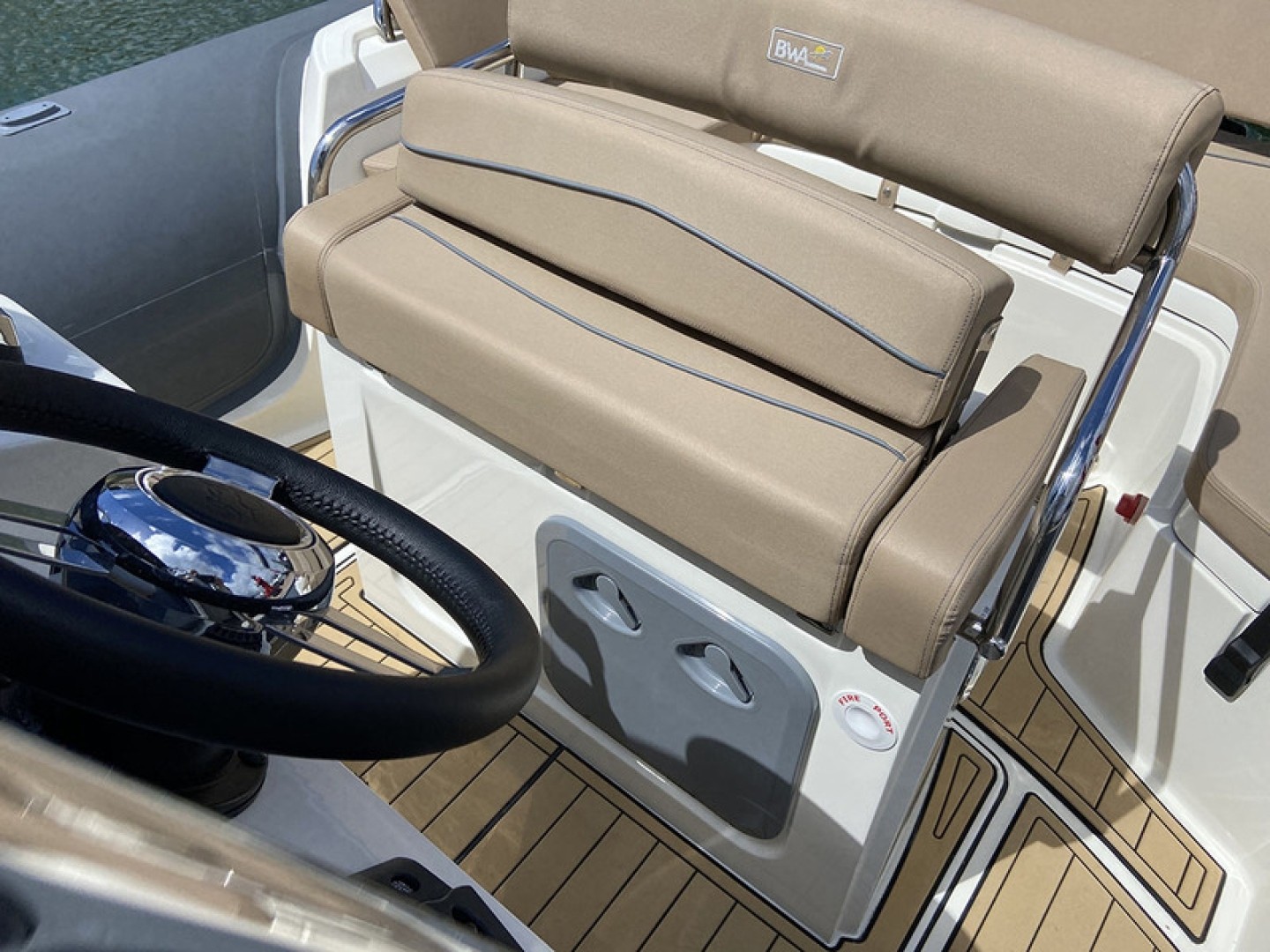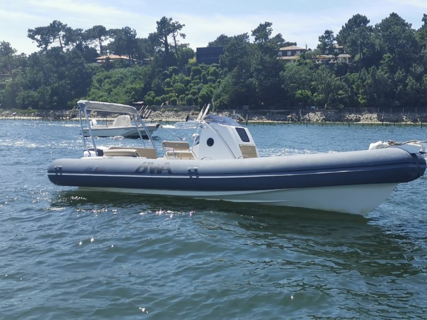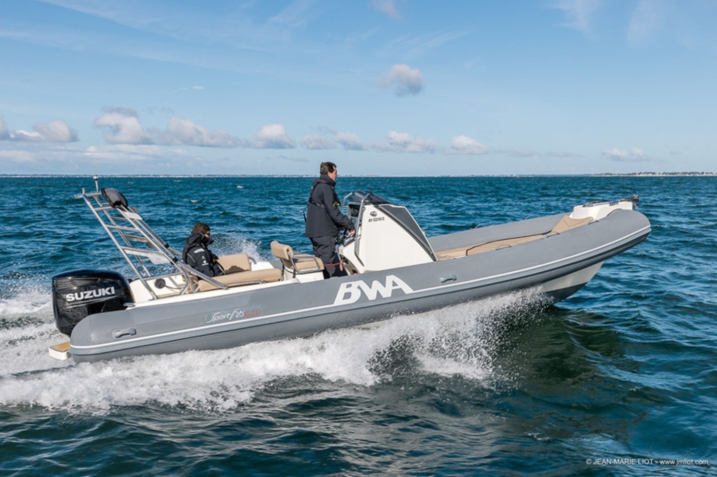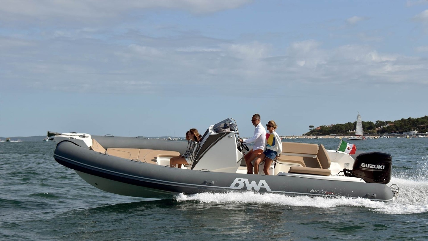BWA Sport 26 GTO, grâce à une carène sûre et rapide qui est le résultat d'années de recherche et de développement, est un semi-rigide pratique, élégant et confortable, idéal pour passer des journées entières de détente en famille et entre amis en toute sécurité. Grands espaces modulaires et ergonomiques, incroyable capacité de stockage, idéal pour se poser sur les bancs du bassin d'Arcachon du fait de son faible tirant d'eau.