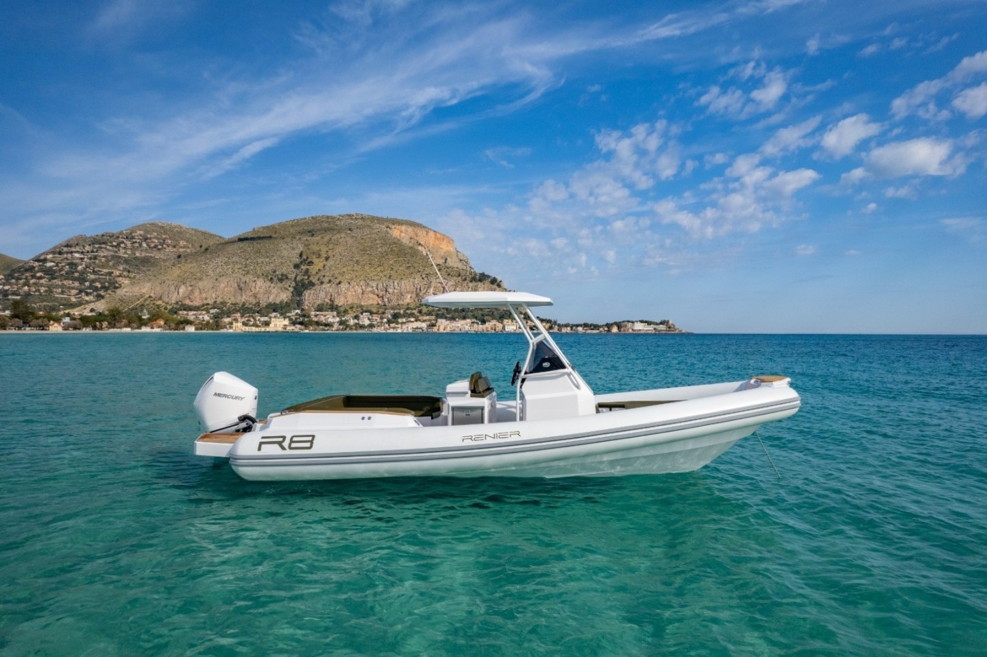 Un semi-rigide à la finition luxueuse. Dessiné et réalisé en Sicile le Renier R 8 fait figure de bateau d’orfèvre. Excellent comportement marin !