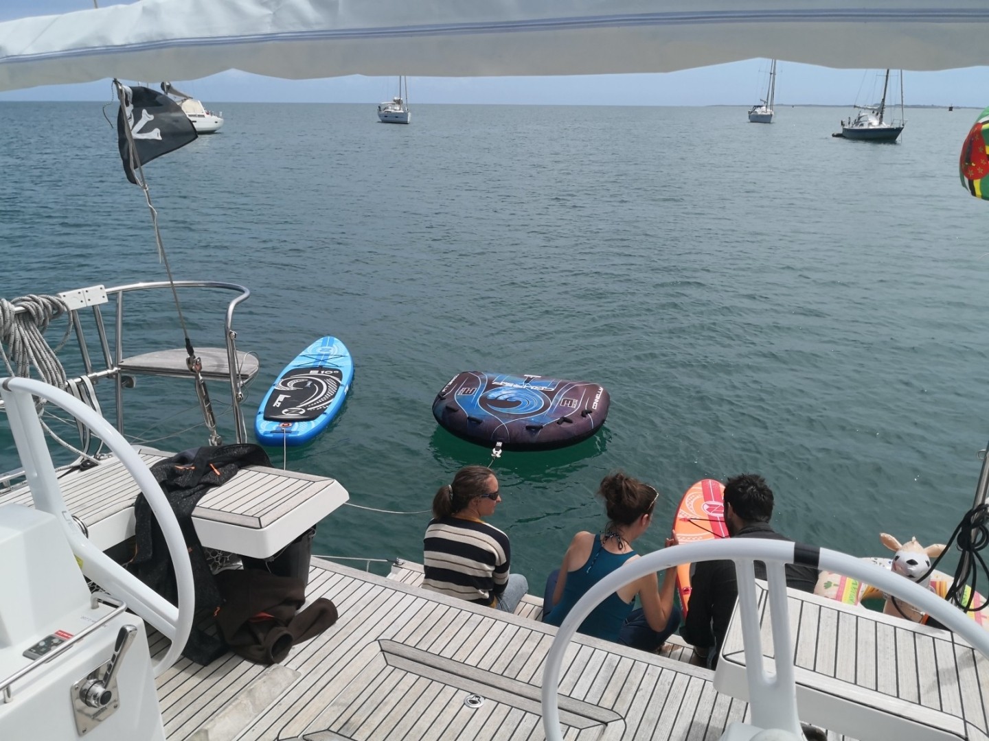 Une journée pour tous ! Belle navigation, sports aquatiques, convivialité à bord dans le confort du bateau. Heureux était un ami qui a pu tenir la barre. Merci Erwann de cette belle journée.