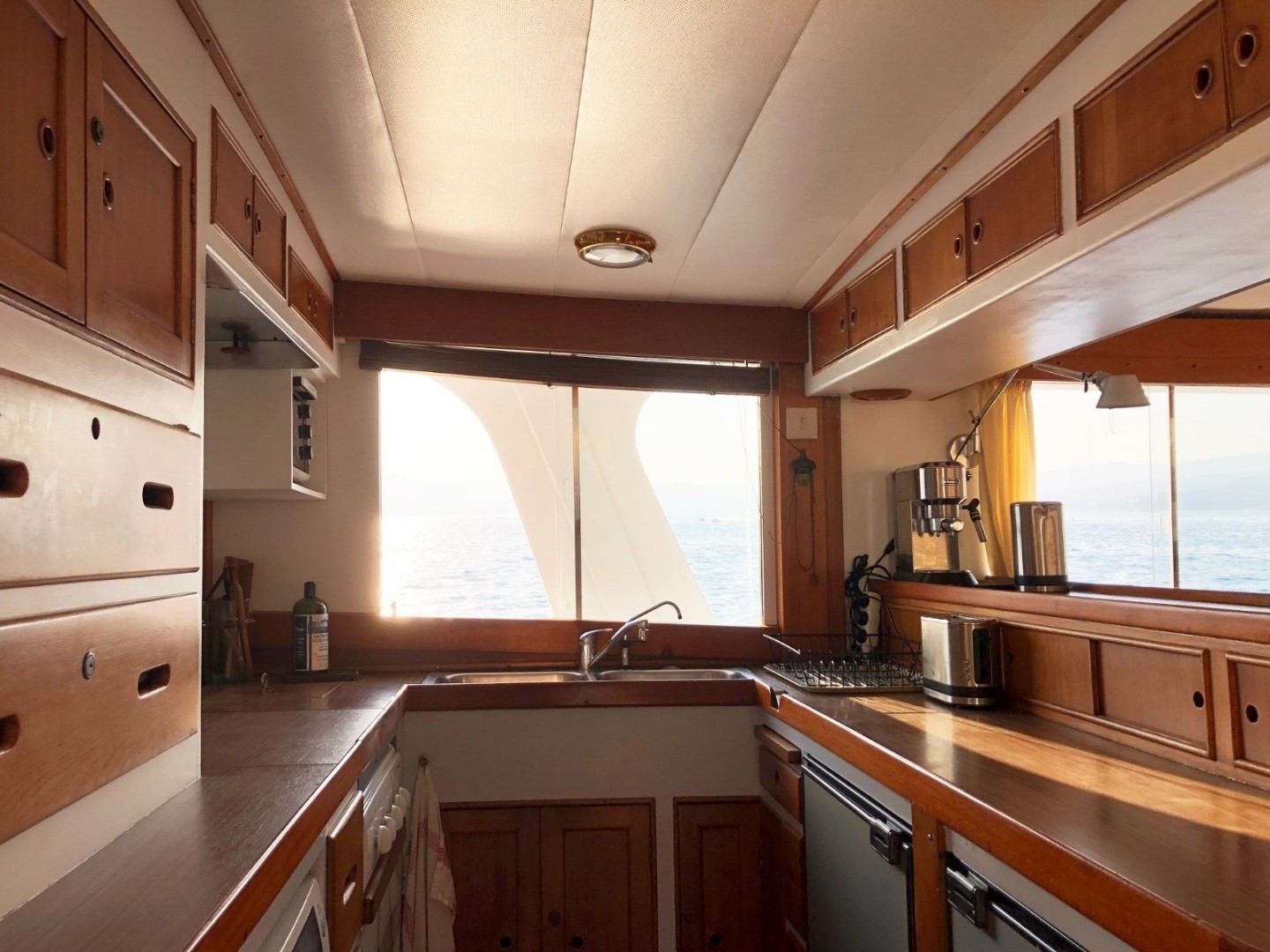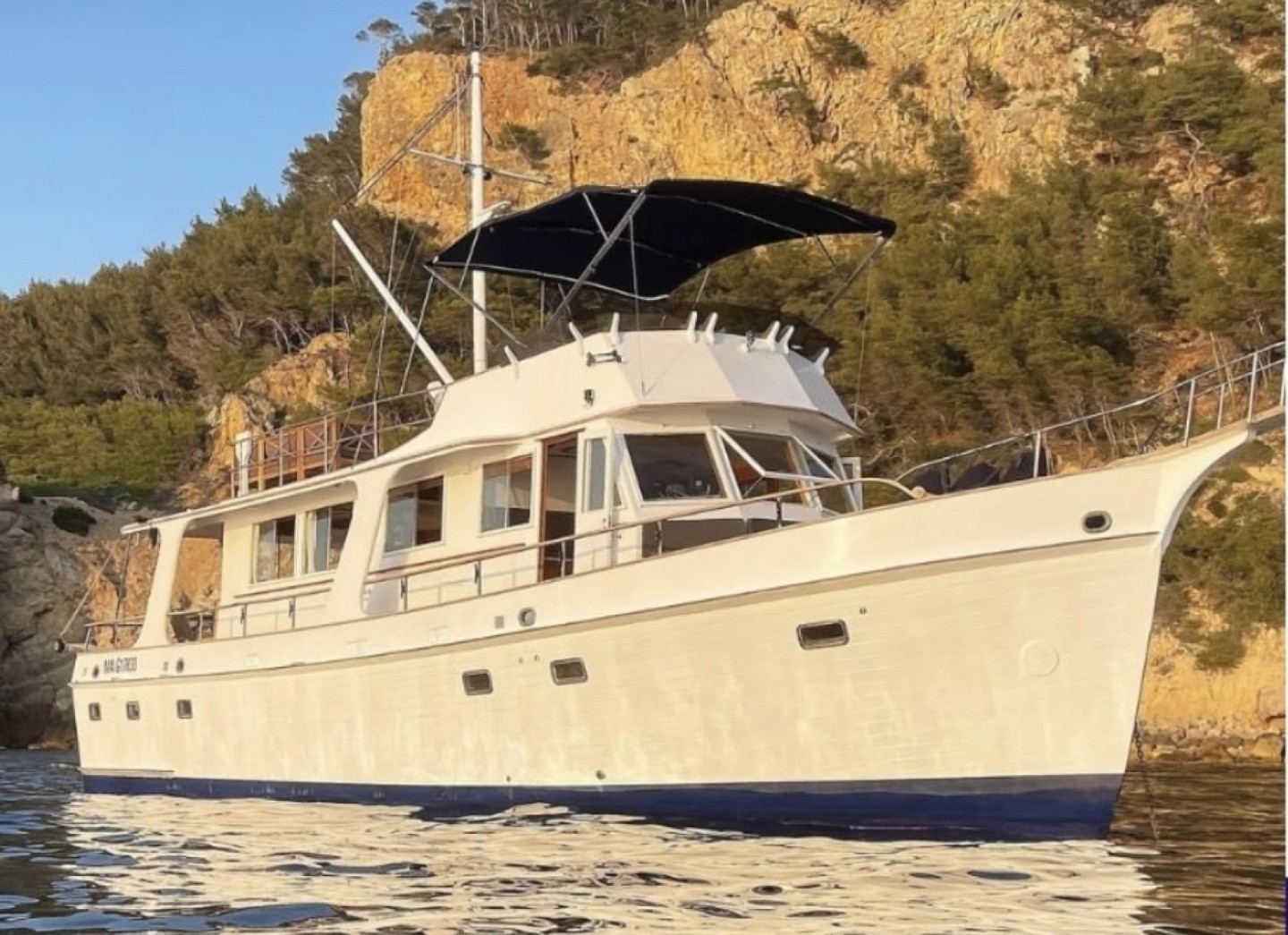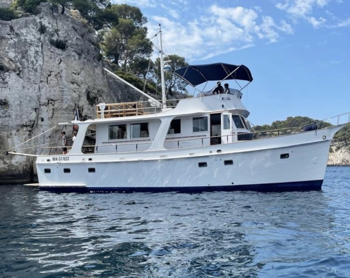 Le Ghimar est une unité très bien entretenue avec pour vision de pérenniser le mobilier et les équipements d’origine. Cela vous garantie une prestation hautement raffinée. l Comme son nom l’indique, sa longueur est de 50 pieds soit 15,54m et sa largeur 4,88m. Ce bateau atypique à la location dispose 2 nouveaux moteurs Caterpillar 350 CV. Un véritable plaisir de naviguer au rythme des vagues sur une vitesse de croisière de 9 noeuds, pour une consommation moyenne de 18L/h. Vous noterez aussi la présence d’une annexe au moteur 30cv pour accoster les plages isolées… En intérieur, vous constaterez sur les images en bas de page, la présence de 3 cabines twins confortables accueillant jusqu’à 6 couchages, et 2 salles de bain dont une avec baignoire. Pour finir, vous succomberez à ses salons de pont, de fly et intérieur. Confortablement installé, de nouveaux horizons s’offriront à vous, vous profiterez de moments hors du temps, entouré par un cadre naturellement privilégié. Et quand il sera temps de profiter de la fraicheur de l’eau, équipement de snorkeling et paddle seront à votre disposition. attention le carburant ainsi que le skipper ne sont pas compris dans le montant réglé via samboat. NB:-carburant à régler sur place 150 euros ttc pour frioul et cote bleue - skipper à régler sur place 300 euros ttc.le skipper professionnel fera en direct avec vous un contrat de skippage. -matelot pour assister le skipper et vous servir lors de la sortie à régler sur place 150 euros ttc.