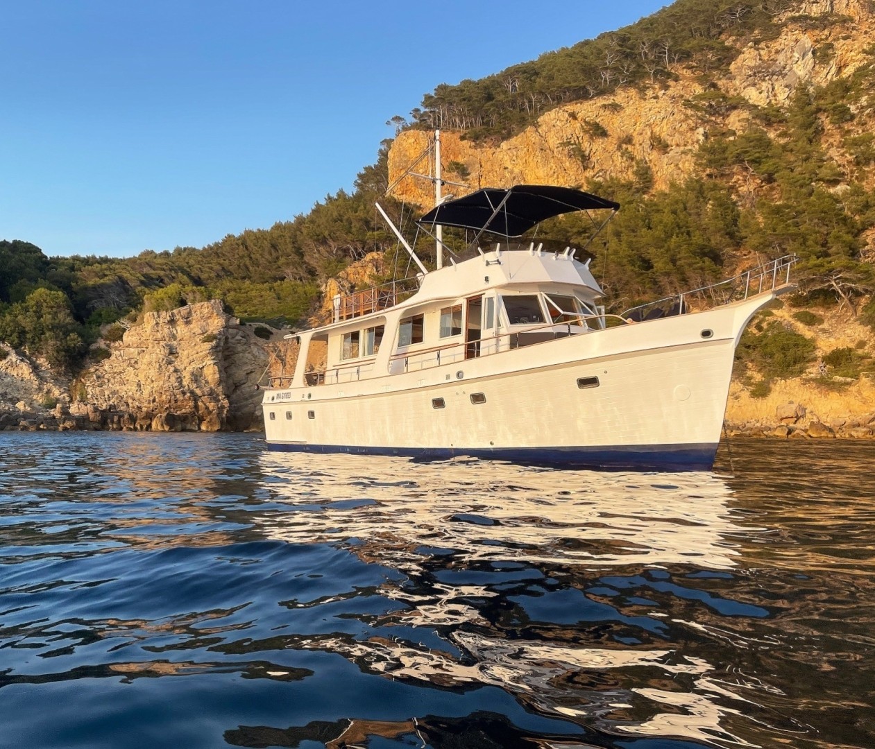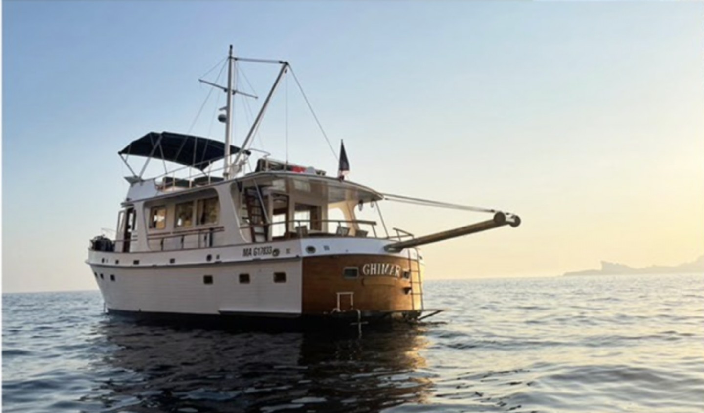 Le Ghimar est une unité très bien entretenue avec pour vision de pérenniser le mobilier et les équipements d’origine. Cela vous garantie une prestation hautement raffinée. l Comme son nom l’indique, sa longueur est de 50 pieds soit 15,54m et sa largeur 4,88m. Ce bateau atypique à la location dispose 2 nouveaux moteurs Caterpillar 350 CV. Un véritable plaisir de naviguer au rythme des vagues sur une vitesse de croisière de 9 noeuds, pour
