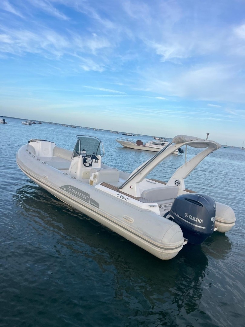 Capelli Tempest 770 – 250 cv Yamaha | Partenza: Grand Piquey / Cap Ferret | Noleggio giornaliero | O al tramonto per godere di un magnifico tramonto sul Bacino |⸻| | Barca potente, spaziosa e confortevole - Accoglie fino a 16 persone: | • Motore Yamaha 250 cv - navigazione fluida, stabile e piacevole | • Ampi prendisole a prua e a poppa con prolunghe | • Bimini per pranzare o riposarsi all'ombra | • Tavolo rimovibile per condividere un pasto o un aperitivo a bordo | • GPS ecoscandaglio di ultima generazione per una navigazione semplice e precisa | • Sistema audio integrato per ascoltare la tua musica a bordo | • Circolazione fluida sul ponte, ideale anche in gruppo | • Stivaggi, scaletta bagno, piattaforma posteriore |⸻| | Attività nautiche disponibili su richiesta: | → Ciambella trainata, wakeboard, sci nautico | → Facile accesso ai luoghi simbolo: Isola degli Uccelli, Banc d'Arguin, Duna di Pilat... |⸻| | Lasciateci gestire il pieno: | → Partite con il serbatoio pieno | → Al ritorno, ci occupiamo del rifornimento (carburante addebitato in base al consumo) | → Un servizio semplificato per un'esperienza senza vincoli |⸻| | Per qualsiasi domanda o per prenotare, non esitate a contattarci | Regalati una giornata eccezionale o un tramonto memorabile sul Bacino d'Arcachon | | Adrien