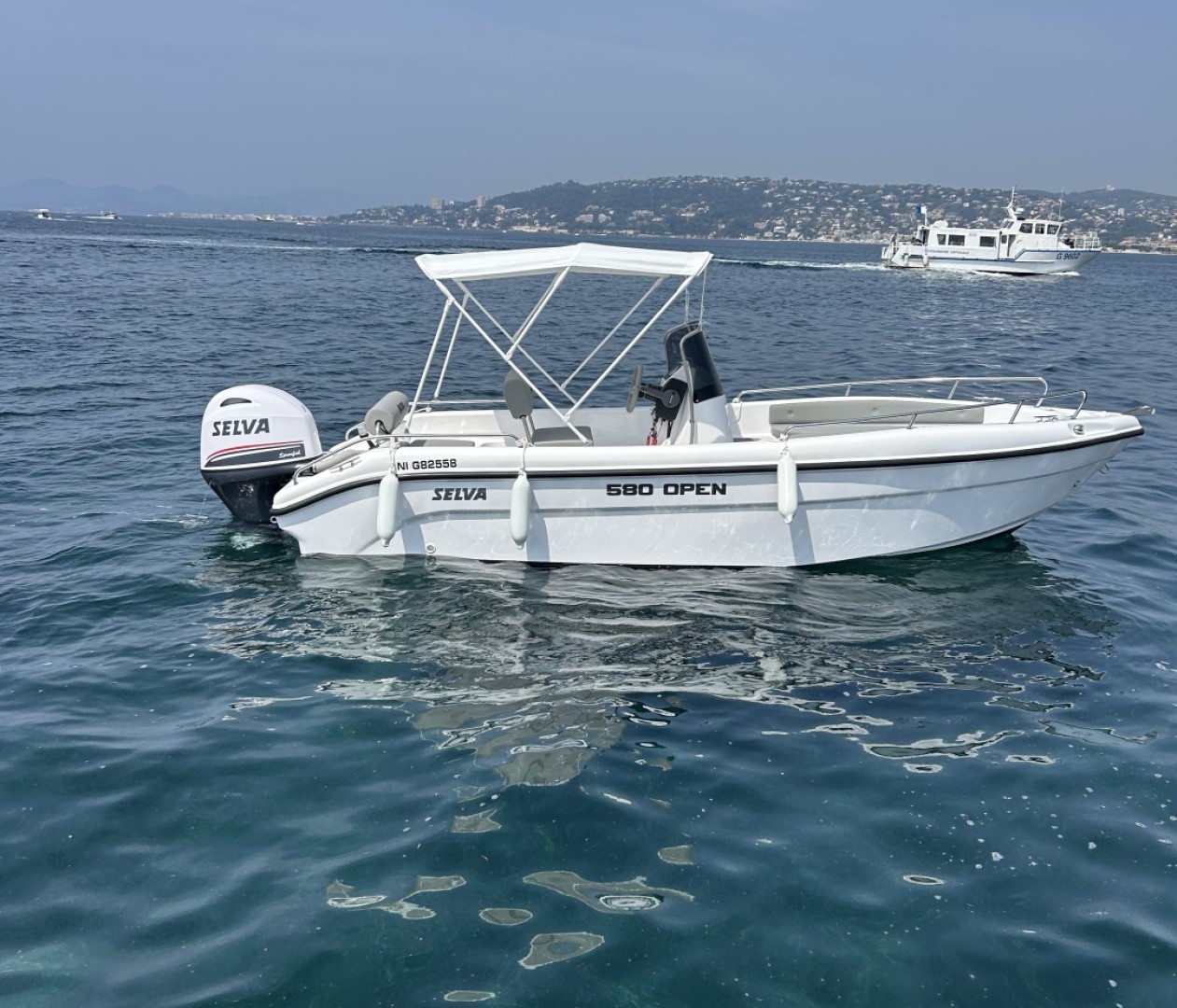 Barca aperta recente e accogliente per un'uscita tra amici o in famiglia. Possibilità di noleggio giornaliero o per mezza giornata per visitare il Cap d'Antibes, le isole di Lérins o la baia di Cannes. Possibilità di sport acquatici come il tubo trainato, lo sci nautico o il wakeboard a pagamento