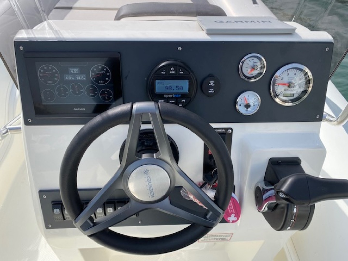 Semirigido italiano, ottima qualità, marca BSC, nuovo. È dotato di un motore da 150 cavalli (iniezione Honda 4 tempi), potente, molto silenzioso, pulito e molto efficiente nei consumi. Situato nel punto di ormeggio a 20 metri dal molo del Grand-Piquey (possibilità di incontro altrove). - Dispone di un grande lettino prendisole anteriore, - Dinette con tavolo da pranzo nella parte posteriore, trasformabile anche in lettino prendisole. - Radio Hi-Fi Bluetooth con altoparlanti - Il la barca è dotata di GPS e ecoscandaglio. Sono disponibili anche un wakeboard e una boa di traino. Scafo eccellente, passa molto bene le onde, si guida da solo e molto comodamente, qualunque sia il livello di esperienza del capitano. Orari molto flessibili, Non esitate a contattarmi per qualsiasi domanda. Pierre