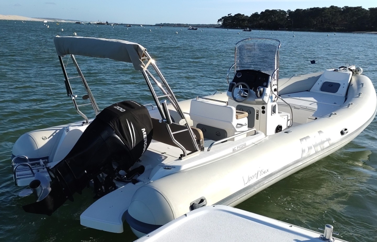 Dotato di un motore da 200 CV Mercury, raggiungerete rapidamente la vostra destinazione e vi permetterà di trainare sci nautico, Wake Board e boe. Le destinazioni per le vostre escursioni giornaliere non mancano nella Baia di Arcachon, isola degli uccelli, Duna di Pilat, Cap Ferret, Banco d'Arguin...