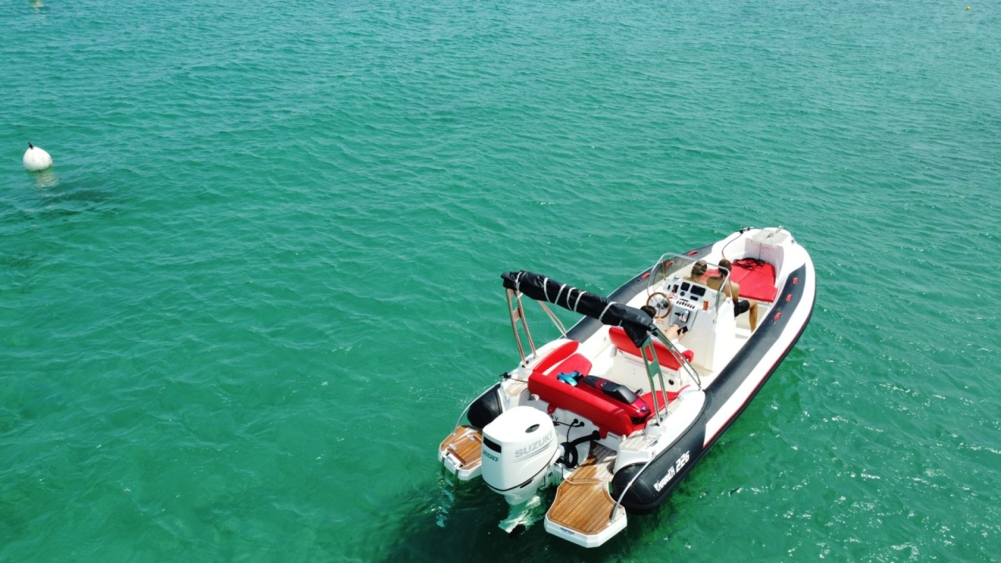 REFIT 2023: Nuova tappezzeria / Striscia di salsicce Colore tappezzeria: Rosso Colore striscia: Nero carbone Capacità carburante: 200 L Capacità acqua: 40 L Lunghezza: 6 m90 GPS/ecoscandaglio, radio (BT), bimini top microforato (può essere conservato durante la navigazione), tavolo rimovibile, scaletta da bagno e doccia con acqua limpida. Per 3 giorni: 1/2 giorno gratis (prezzo di 2,5 giorni) Per 1 settimana: 1 giorno gratis (prezzo di 6 giorni) Skipper su richiesta: 250€ / giorno