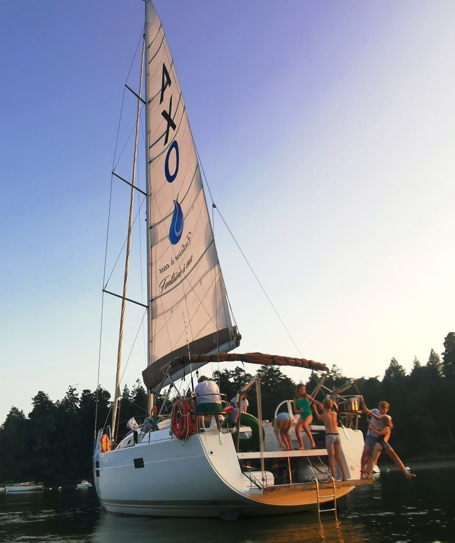 Une journée pour tous ! Belle navigation, sports aquatiques, convivialité à bord dans le confort du bateau. Heureux était un ami qui a pu tenir la barre. Merci Erwann de cette belle journée.